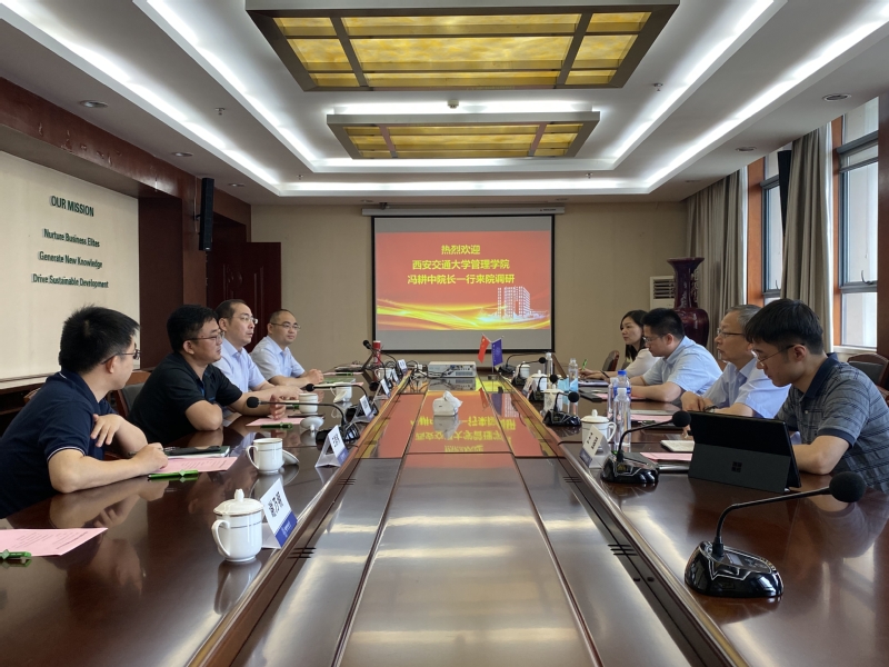 6月24日上午,西安交通大学管理学院冯耕中院长一行来必赢官网走访调研。院长周德群、院党委书记苏州、副院长王子龙、王群伟、谢乃明陪同出席相关活动。