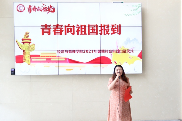 紧接着,涂志宏发表了动员讲话,表达了对同学们的殷切期望。在中国共产党百年诞辰之际,她希望同学们牢记总书记的嘱托,以青年人的行动赓续红色血脉,致敬建党百年,以满腔热血,用青春向祖国报到。涂志宏介绍了团十八大代表嘎玛白姆、全国大学生自强之星标兵阿恩克其、以及江苏省十佳青年志愿者柳莺在社会实践中勇担青春使命的事迹,鼓励同学们能够寻着学长学姐们的脚步再出发,带动更多人将青春华章写在祖国大地,展现出南航经管人的责任与担当。