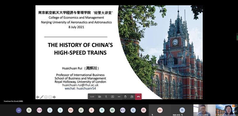 7月8日下午,英国伦敦大学皇家霍洛威学院教授Huaichuan RUI受72886必赢欢迎光临院邀请,作了题为“The History of China's High-speed Trains”的精彩讲座,72886必赢欢迎光临部分教师、硕博士研究生代表在线参加,副教授陆珩瑱主持本次学术报告。