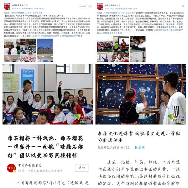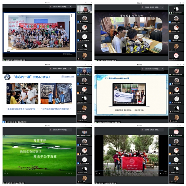 首先,各团队分别以实践视频开头,展现了丰富多彩的活动内容。暖疆石榴籽团队放映一张张与当地孩子温馨互动的照片,再现了各民族像石榴籽一样紧紧抱在一起的团结友爱之情。聚焦当地教育资源短缺现状,荧火星芒团队募捐上千本书籍,录制科普系列视频和团课,打造南航书屋和云端书屋,线上线下结合,落实孩子们的求知梦想,获得了昭通团委的充分认可。赶赴大理白族村落的听扎染说团队,现场展示扎染作品,立志用深入体验和直播联动以架起文化传承之桥,用访谈对话和科技赋能以探寻扎染创新之路。“团队部分成员高原反应严重,但是想到孩子们的笑脸,我们就不能打退堂鼓”,面对艰难险阻,格桑花开团队用文理艺乐和满腔热血编织出一幅的盛开着格桑梅朵的梦想蓝图。