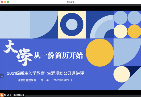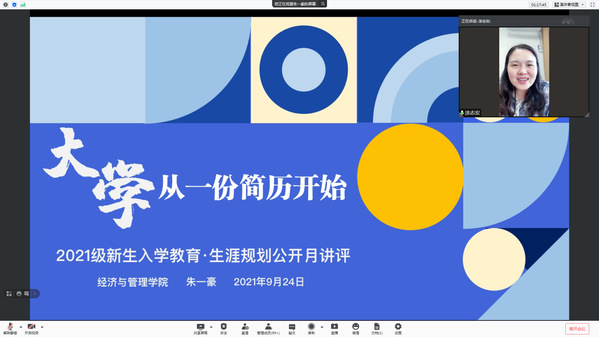 为了帮助2021级新生更好地了解学校、了解专业,为今后的学习和生活打下良好基础,9月24日,72886必赢欢迎光临2021级本科生辅导员朱一豪以“大学,从简历开始”为主题线上开展了公开月讲评活动,院党委副书记涂志宏、团委书记刘小杨及全体2021级本科生参加了本次活动。